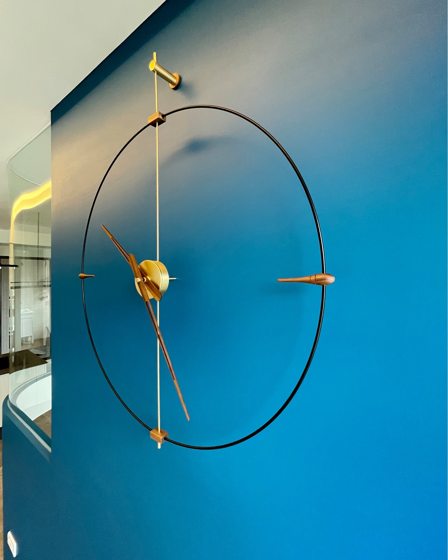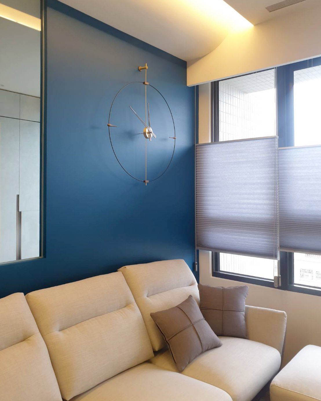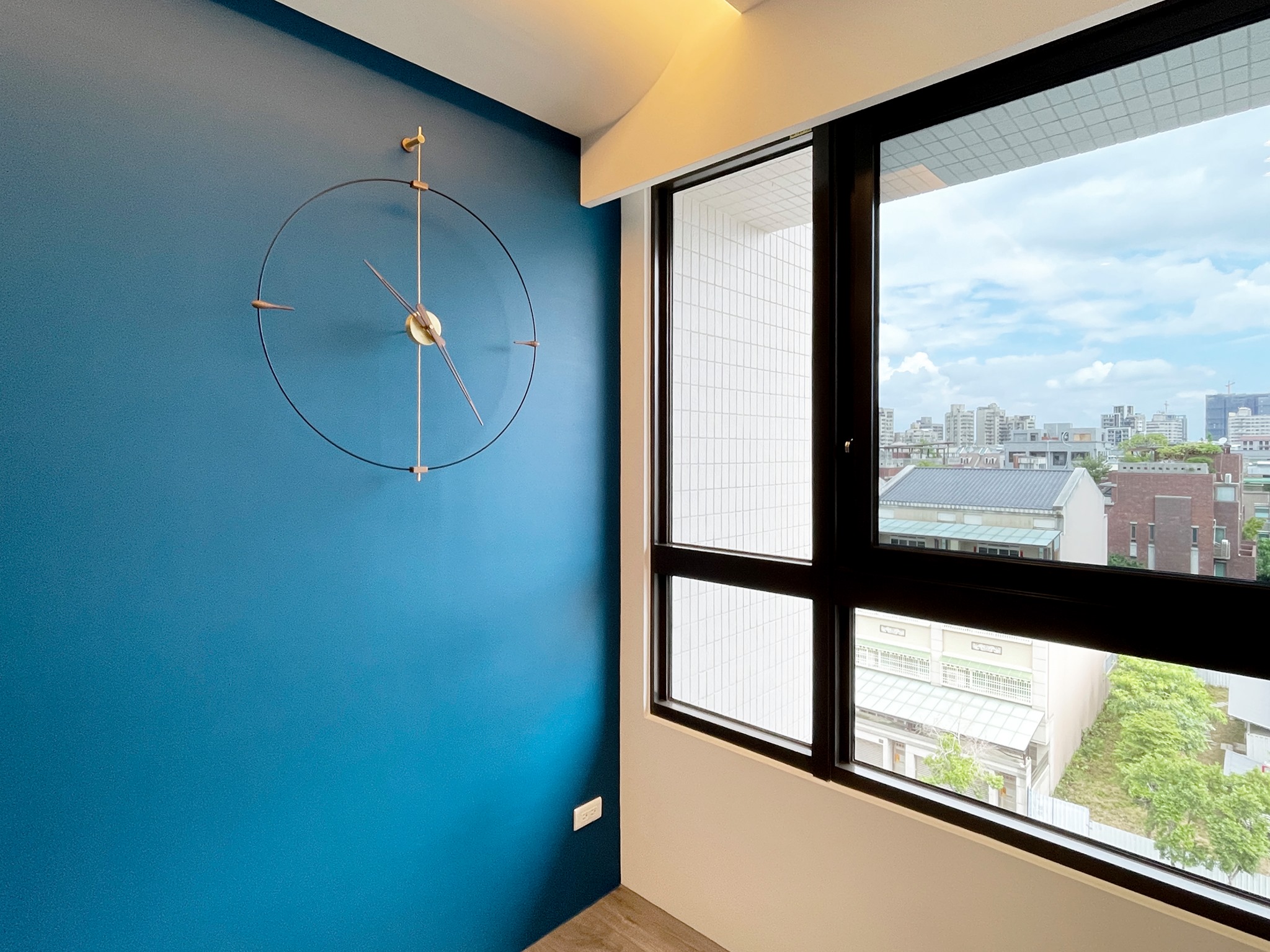 是的,相信有眼尖的粉絲有留意到了,這次安裝沙發還未入場,不過老書有看過沙發尺寸也預留的高度,但其實這個時鐘的甜蜜點 (sweet point)是很有挑戰的,因為這是木作隔間牆,因此老書有運用特別的安裝技巧,讓時鐘可以看起來更加廷立與好看。